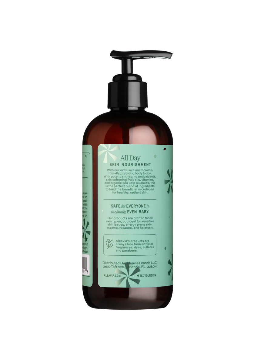 With super food like organic sea kelp, aloe vera, shea butter, coconut oil, and MSM powder to hydrate and soothe while keeping your beneficial microbiome happy-plus that crisp spearmint-peppermint candy cane kick. Perfect for post-shower hydration and super soft skin that will put you in the holiday spirit with every use!