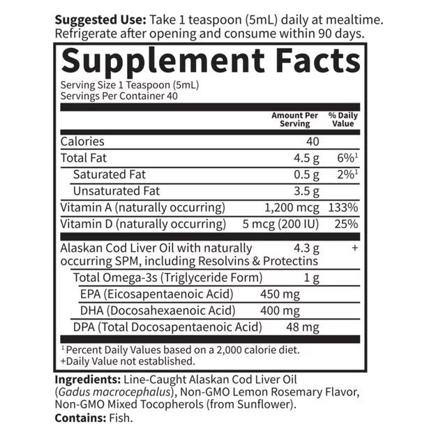 Our fully traceable and sustainably-sourced cod is line-caught in Dutch Harbor, Alaska and is Non-GMO Project Verified. Naturally includes Specialized Pro-Resolving Mediators (SPM) which are compounds that naturally support normal inflammatory responses in the body†, Dr. Formulated Alaskan Cod Liver Oil is the wise choice for you and your family.